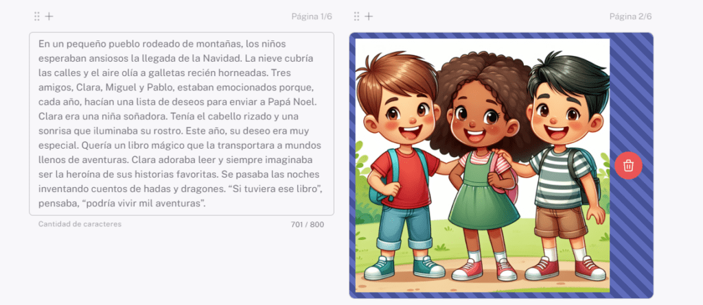 Podrás incluir vídeos e imágenes para enriquecer tus lecturas, generar ilustraciones de tus personajes mediante IA o seleccionar imágenes del corpus de Smile and Learn. Esto te permitirá crear una experiencia más visual, interactiva y atractiva para tu alumnado.