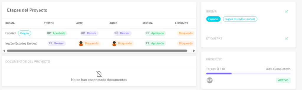 1. Selecciona idiomas: elige el idioma de origen y los idiomas a los que quieras traducir tu proyecto. Ideal para grupos multilingües.