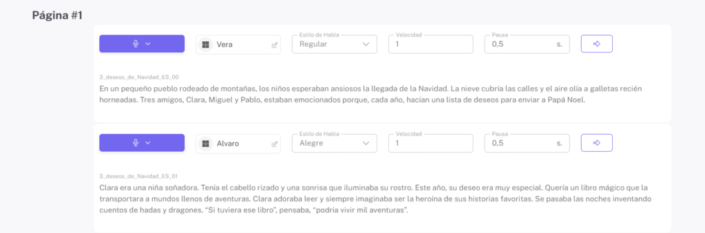 3. Personaliza el audio: define voces, estilo de locución, velocidad, música.